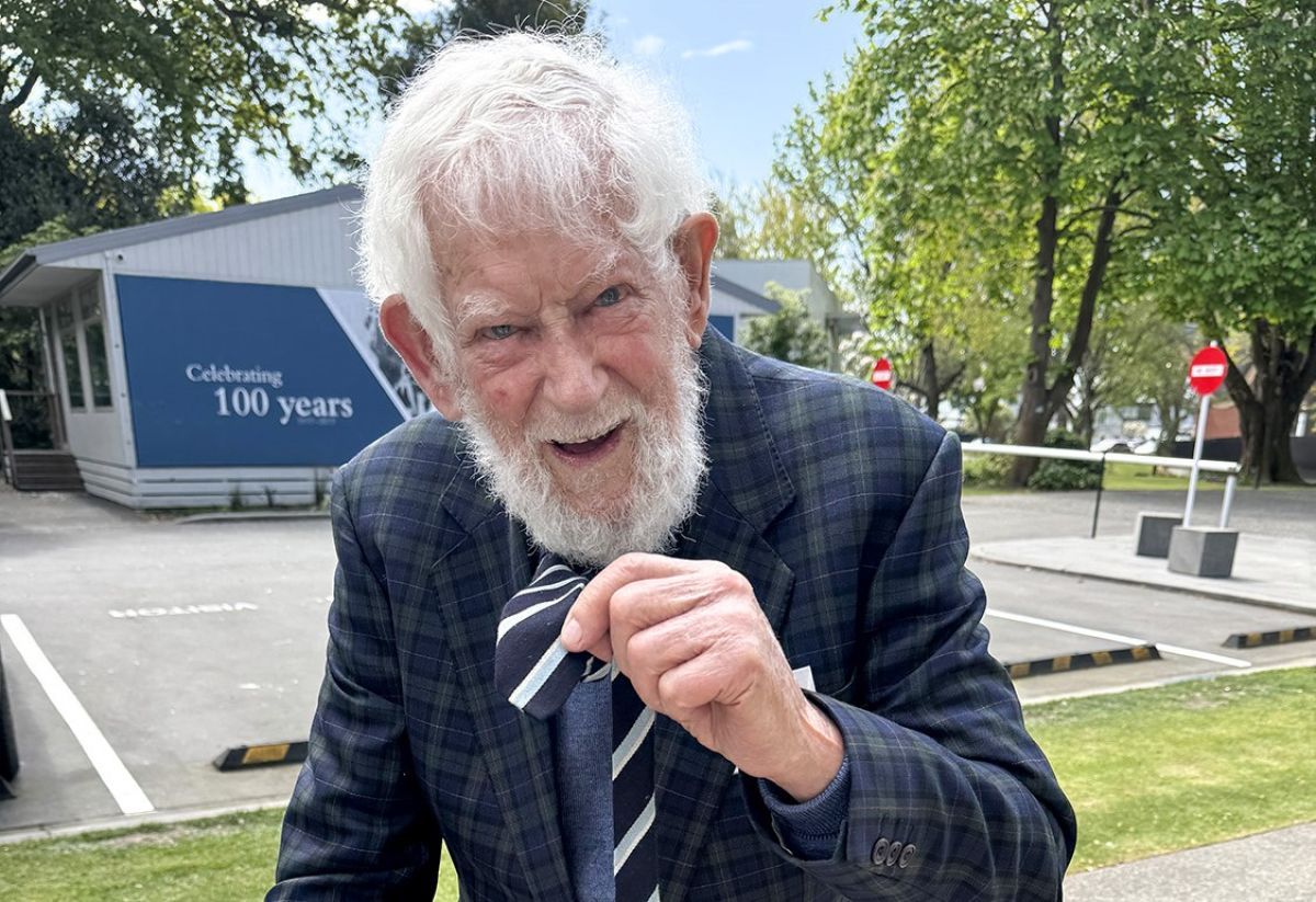 Barrie Hunt (OC 1950) wearing a very old Old Boys tie!